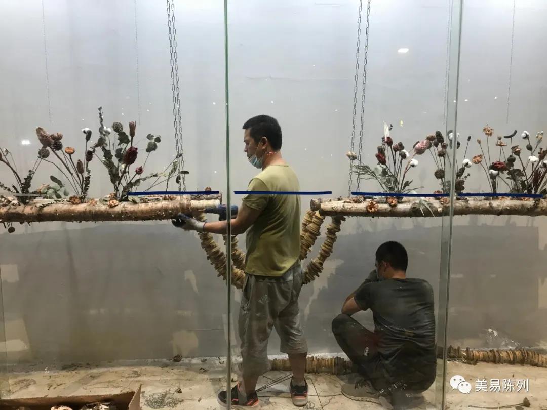 经过安装工人辛苦的安装和Eason老师的花艺陈列,产品陈列及整体效果陈列。最终陈列出来的效果,整体生机勃勃,寓意当下全球疫情正在逐渐好转,万物苏醒,万物重生。同时代表品牌精神涓涓不息,注重产品品质,手工制作,原材料都是天然无害。