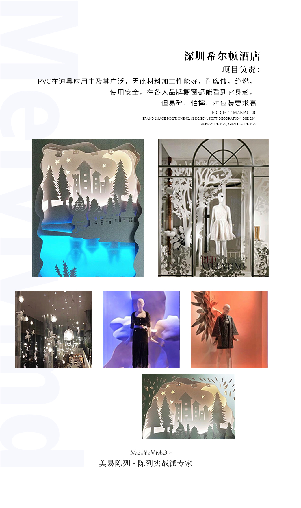 PVC在道具应用中及其广泛,因此材料加工性能好,耐腐蚀,绝燃,使用安全,在各大品牌橱窗都能看到它得身影。但易碎,怕摔,对包装要求高